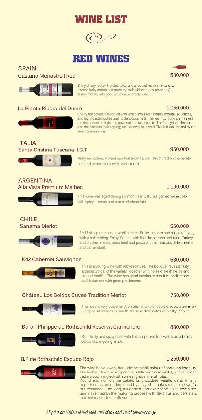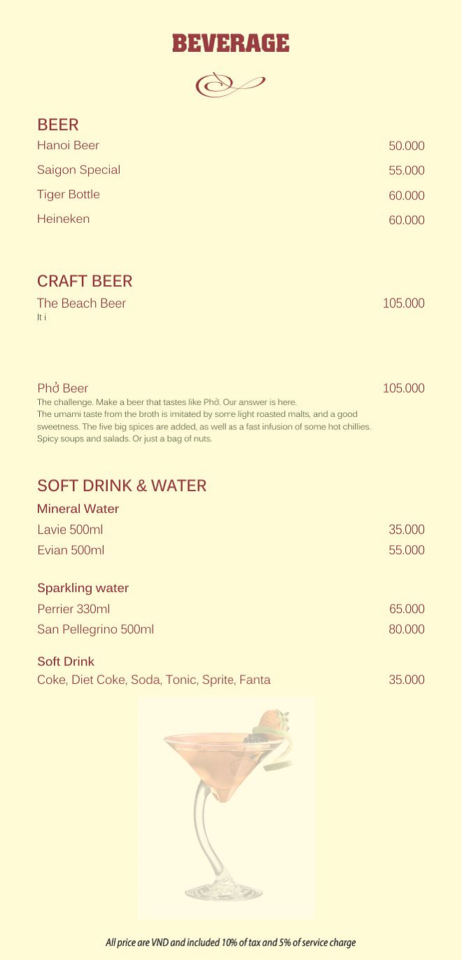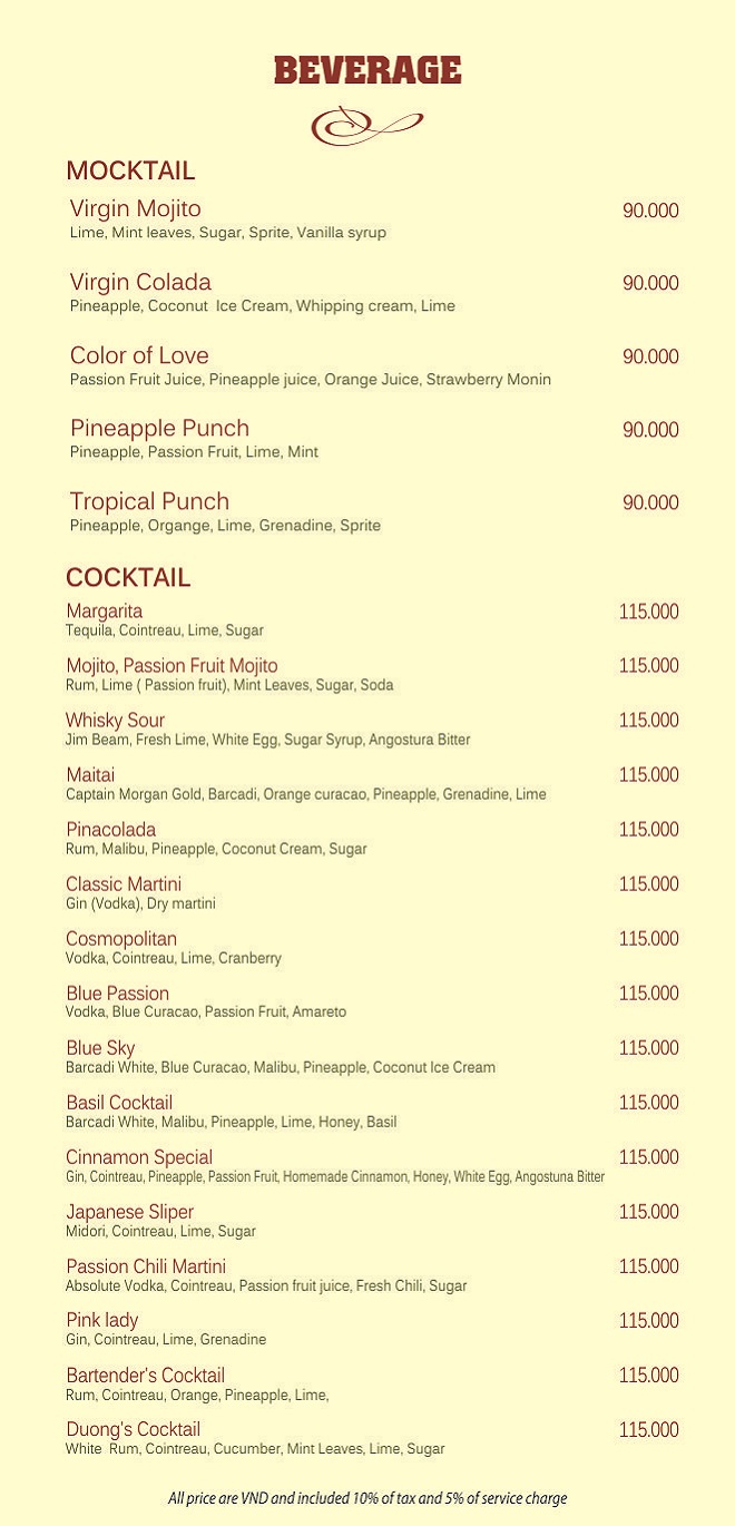 Drink menu