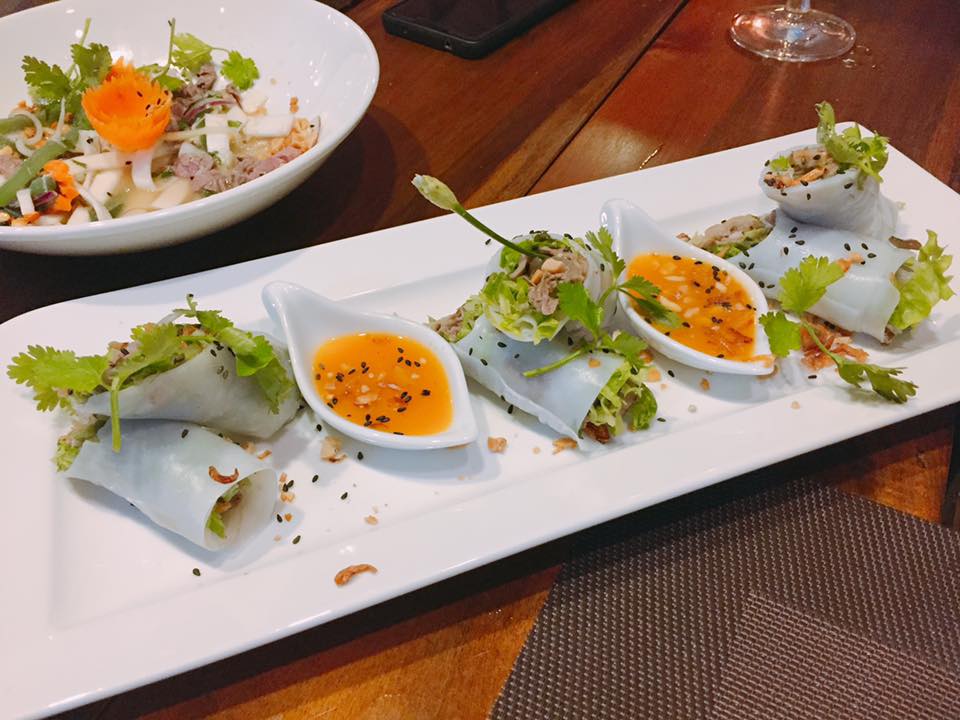 It literally means "salad rolls" and should be distinguished from the fried rolls. The translucent cigar-shaped rolls are packed with greens, sometimes shrimp and/or pork, and herbs. They need a dunk in nước chấm of course. Almost every region in Vietnam has its own distinct spring roll but no matter where you are, the wrapping and rolling process is more or less the same.